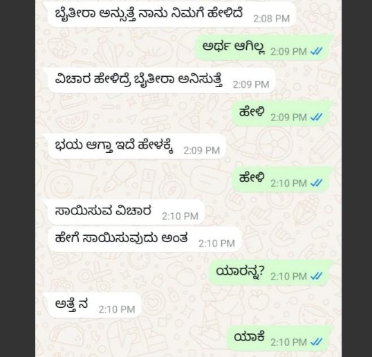 ಕನ್ನಡದಲ್ಲಿ ಸಂದೇಶ ಕಳುಹಿಸಿ ಮಾತು ಆರಂಭಿಸಿದರು. ನೀವು ನನಗೆ ಬೈಯುವುದಿಲ್ಲ ಎಂದರೆ ನಿಮ್ಮನ್ನು ಒಂದು ಮಾತು ಕೇಳುತ್ತೇನೆ ಎಂದರು. ಬಳಿಕ ಅತ್ತೆ ತುಂಬ ಕಿರುಕುಳ ನೀಡುತಿದ್ದಾರೆ. ಅವರನ್ನು ಸಾಯಿಸಲು ಎರಡು ಮಾತ್ರೆ ಕೊಡಿ ಎಂದರು.
