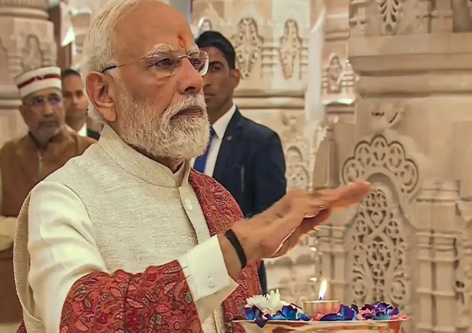 ಅಯೋಧ್ಯೆಗೆ ಆಗಮಿಸುತ್ತಿದ್ದಂತೆ ರಾಮ ಜನ್ಮಭೂಮಿ ಸಂಕೀರ್ಣದಲ್ಲಿರುವ ಏಳು ದೇವಾಲಯಗಳಿಗೆ ಭೇಟಿ ನೀಡಿದ ಮೋದಿ ಮಾತಾ ಅನ್ನಪೂರ್ಣ ದೇವಸ್ಥಾನದಲ್ಲಿ ಪ್ರಾರ್ಥನೆ ಸಲ್ಲಿಸಿದರು. ನಂತರ ರಾಮ ದರ್ಬಾರ್ನಲ್ಲಿ ರಾಮಲಲ್ಲಾಗೆ ಪೂಜೆ ನೆರವೇರಿಸಿದರು. ಆರ್ಎಸ್ಎಸ್ ಮುಖ್ಯಸ್ಥ ಮೋಹನ್ ಭಾಗವತ್ ಕೂಡ ಅವರೊಂದಿಗೆ ಹಾಜರಿದ್ದರು.