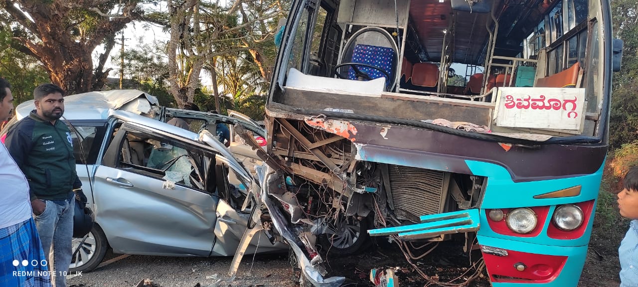 ಕಾರು ಹಾಗೂ ಬಸ್ಸಿನ ನಡುವೆ ಮುಖಾಮುಖಿ ಡಿಕ್ಕಿ : ಇಬ್ಬರು ಸಾವು