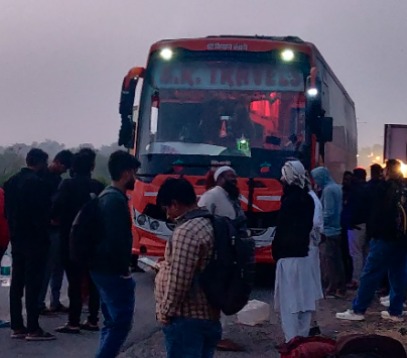 ಖಾಸಗಿ ಬಸ್ ಎಂಜಿನ್‌́ನಲ್ಲಿ ಹೊಗೆ: ತಪ್ಪಿದ ಭಾರೀ ಅನಾಹುತ