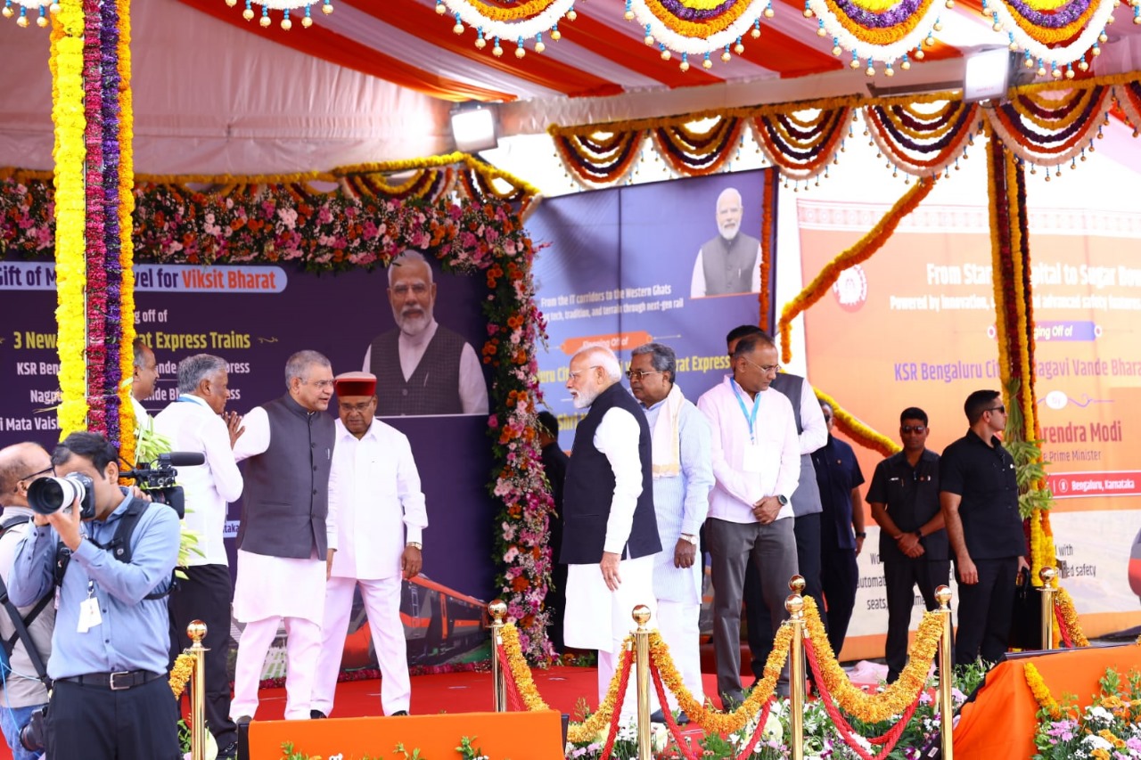ಬೆಂಗಳೂರು: ಬೆಂಗಳೂರಿನ ಕ್ರಾಂತಿವೀರ ಸಂಗೊಳ್ಳಿ ರಾಯಣ್ಣ ರೈಲುನಿಲ್ದಾಣದಲ್ಲಿ ಗೌರವಾನ್ವಿತ ಪ್ರಧಾನ ಮಂತ್ರಿ ನರೇಂದ್ರ ಮೋದಿ ಅವರು ಬೆಂಗಳೂರಿನಿಂದ ಬೆಳಗಾವಿ ಯ ವಂದೇ ಭಾರತ್ ರೈಲಿಗೆ ಚಾಲನೆ ನೀಡಿದರು.