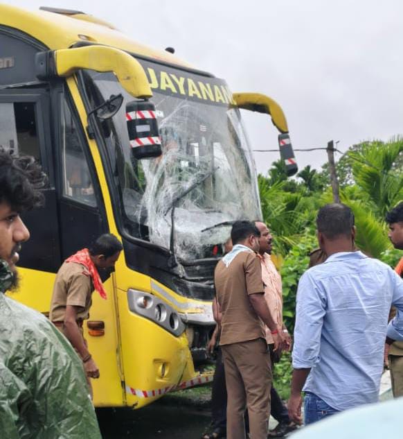 ರಸ್ತೆ ಅಪಘಾತ: ಖಾಸಗಿ-ಸಾರಿಗೆ ಬಸ್ ಮುಖಾಮುಖಿ ಡಿಕ್ಕಿ- ತಪ್ಪಿದ ದುರಂತ, ಹಲವರಿಗೆ ಗಾಯ!