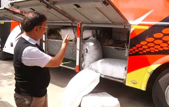 ದೇವನಹಳ್ಳಿ: ಹಿರಿಯೂರು ಬಸ್ ದುರಂತದ ಬಳಿಕ ಸಾರಿಗೆ ಇಲಾಖೆ ಬಸ್‌ಗಳಲ್ಲಿ ಗೂಡ್ಸ್ ಸಾಗಣೆ ಮಾಡದಂತೆ ಕಟ್ಟುನಿಟ್ಟಿನ ಎಚ್ಚರಿಕೆ ನೀಡಿದ್ದರೂ, ಕೆಲ ಬಸ್ ಸಿಬ್ಬಂದಿ ನಿಯಮಗಳನ್ನು ಉಲ್ಲಂಘಿಸುತ್ತಿರುವುದು ಬೆಳಕಿಗೆ ಬಂದಿದೆ. ಹೈದರಾಬಾದ್‌ನಿಂದ ಬೆಂಗಳೂರಿಗೆ ಬಂದ ಬಸ್‌ವೊಂದರಲ್ಲಿ ಅಪಾರ ಪ್ರಮಾಣದ ಲಗೇಜ್ ಸಾಗಿಸುತ್ತಿದ್ದುದನ್ನು ಆರ್‌ಟಿಓ ಅಧಿಕಾರಿಗಳು ಪತ್ತೆಹಚ್ಚಿದ್ದಾರೆ.