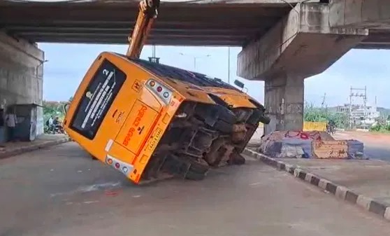 ಸ್ಕೂಲ್ ಬಸ್ ಗೆ ಮಿನಿ ಕ್ಯಾಂಟರ್ ಡಿಕ್ಕಿ: ಶಾಲಾ ವಾಹನ ಪಲ್ಟಿ – ತಪ್ಪಿದ ದುರಂತ