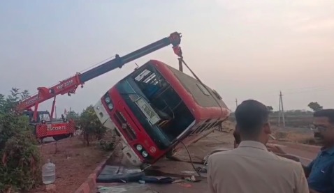 ಬೆಂಗಳೂರಿಗೆ ಹೊರಟಿದ್ದ ಬಸ್ ಪಲ್ಟಿ: ಚಳ್ಳಕೆರೆ ಬಳಿ 44 ಪ್ರಯಾಣಿಕರು ಅದೃಷ್ಟವಶಾತ್ ಪಾರು