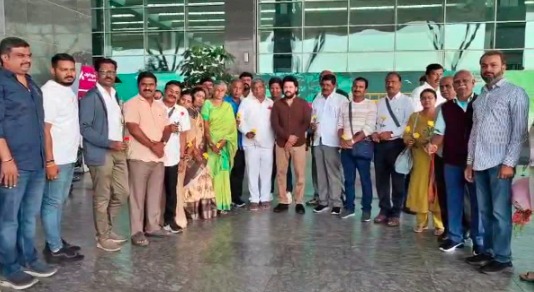 ಇಂದು ಬೆಳಿಗ್ಗೆ (ಮಾ.5) ಅವರು ಬೆಂಗಳೂರು ವಿಮಾನ ನಿಲ್ದಾಣಕ್ಕೆ ಬಂದಿಳಿದರು. ಆಗ ಶಾಸಕ ನಾಗೇಂದ್ರ ಅವರು ವಿಮಾನ ನಿಲ್ದಾಣದಲ್ಲಿ ಅವರನ್ನು ಬರಮಾಡಿಕೊಂಡರು.